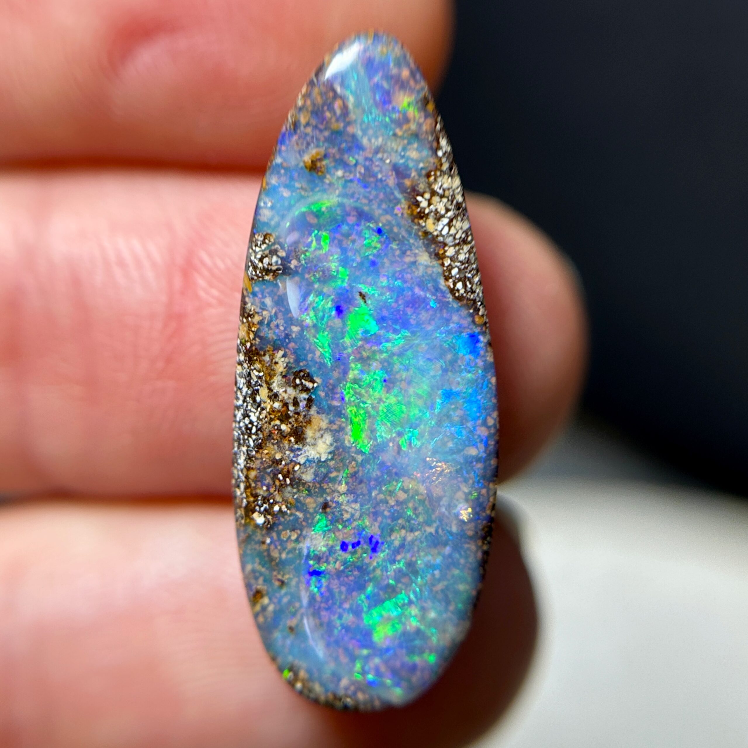 -Opals colour & intensity varies with different lighting and angles; for this reason we try to include photos taken in a variety of lighting; outdoor in direct light, in the shade & inside under or near a basic desk lamp. Please keep in mind that colours can display slightly differently on computer & phone screens